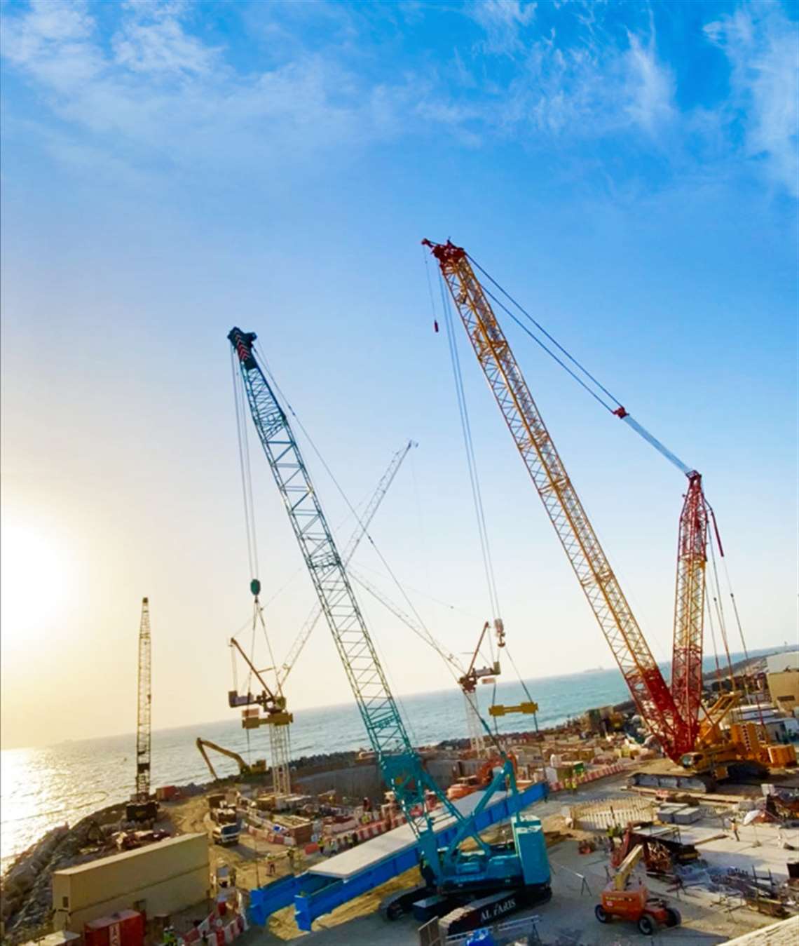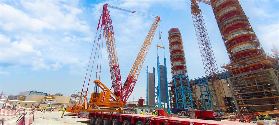 Dubai, United Arab Emirates-headquartered crane and transport specialist Al Faris has completed six months of work at a power station in the UAE. The work consisted of transporting and setting up various power plant components, including condensers, boilers, HRSG modules, generators, and tanks. For this Al Faris used a range of special-purpose vehicles including hydraulic trailers and various all-terrain and crawler cranes.